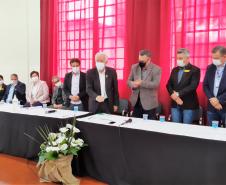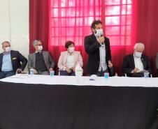PRESENÇAS – Participaram do evento o prefeito de Piraquara, Josimar Fróes; o diretor presidente da Paraná Edificações, Marcus Tesserolli; o diretor presidente da FUNEAS, Marcelo Augusto Machado; a Diretora Geral do Hospital de Dermatologia, Maristella Zanela, além de Prefeitos da RMC, Autoridades do Legislativo, Judiciário, Instituições.