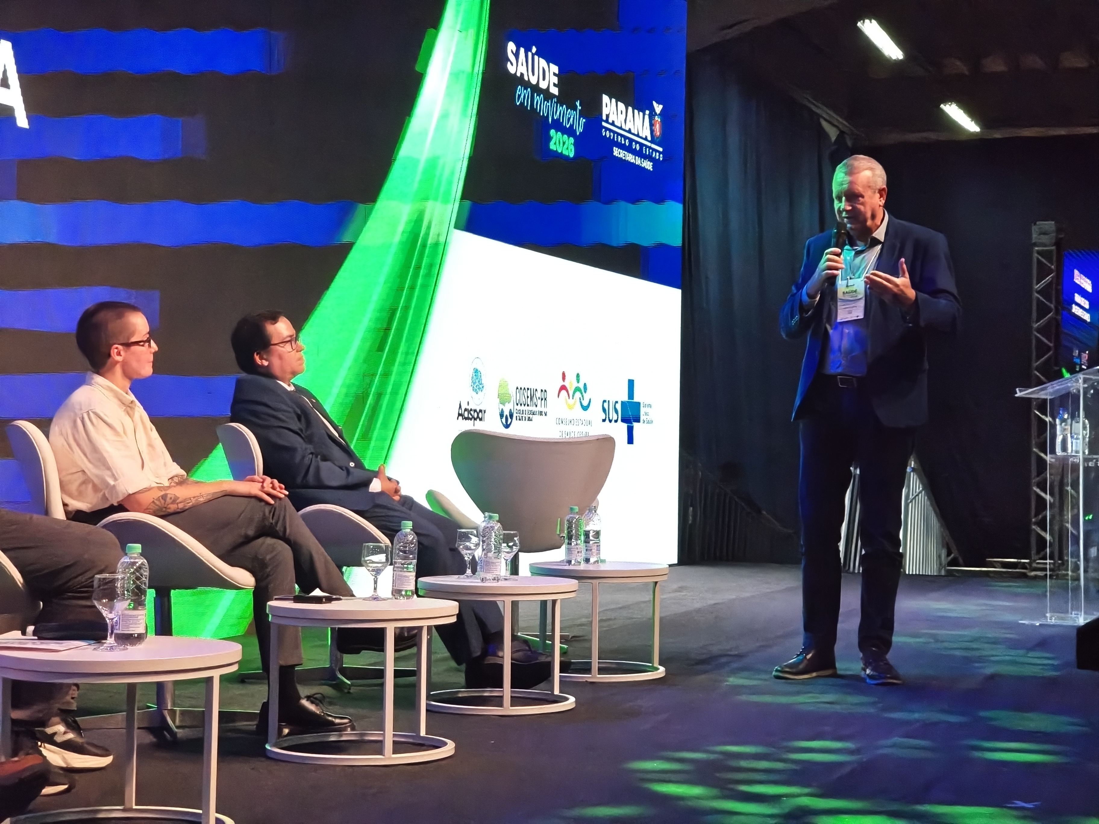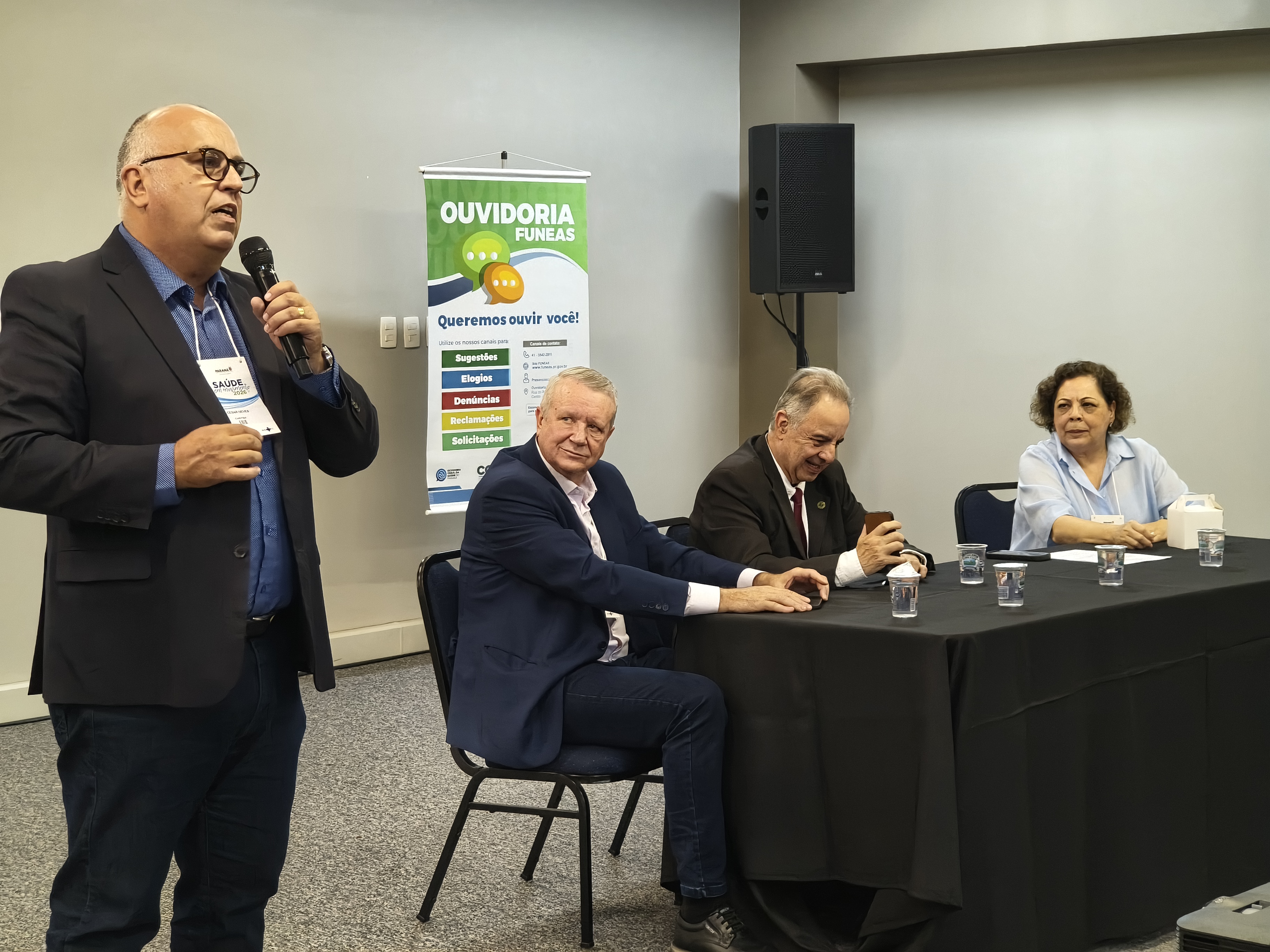Mesa de abertura - A mesa de abertura contou com a presença de autoridades da saúde estadual e de entidades representativas da classe médica, incluindo o diretor-presidente da Funeas, Dr. Geraldo Gentil Biesek; a diretora de Atenção e Vigilância à Saúde da Sesa - PR, Dra. Maria Goretti David Lopes; o diretor-geral da Sesa, Dr. César Neves, representando o secretário de Estado da Saúde, Beto Preto; além dos presidentes do Conselho Regional de Medicina do Paraná, Dr. Romualdo José Ribeiro Gama, e da Associação Médica do Paraná, Dr. José Fernando Macedo.
