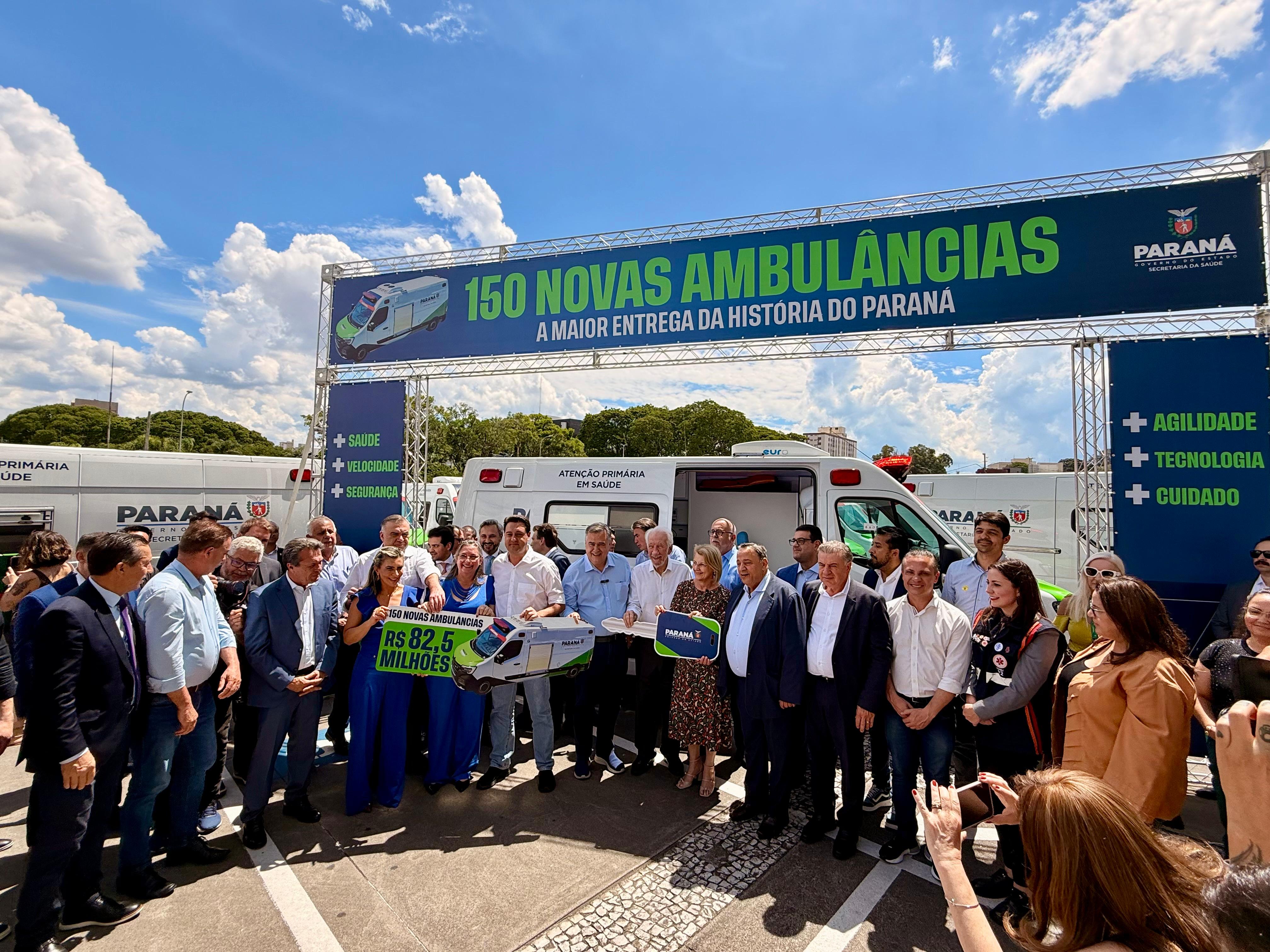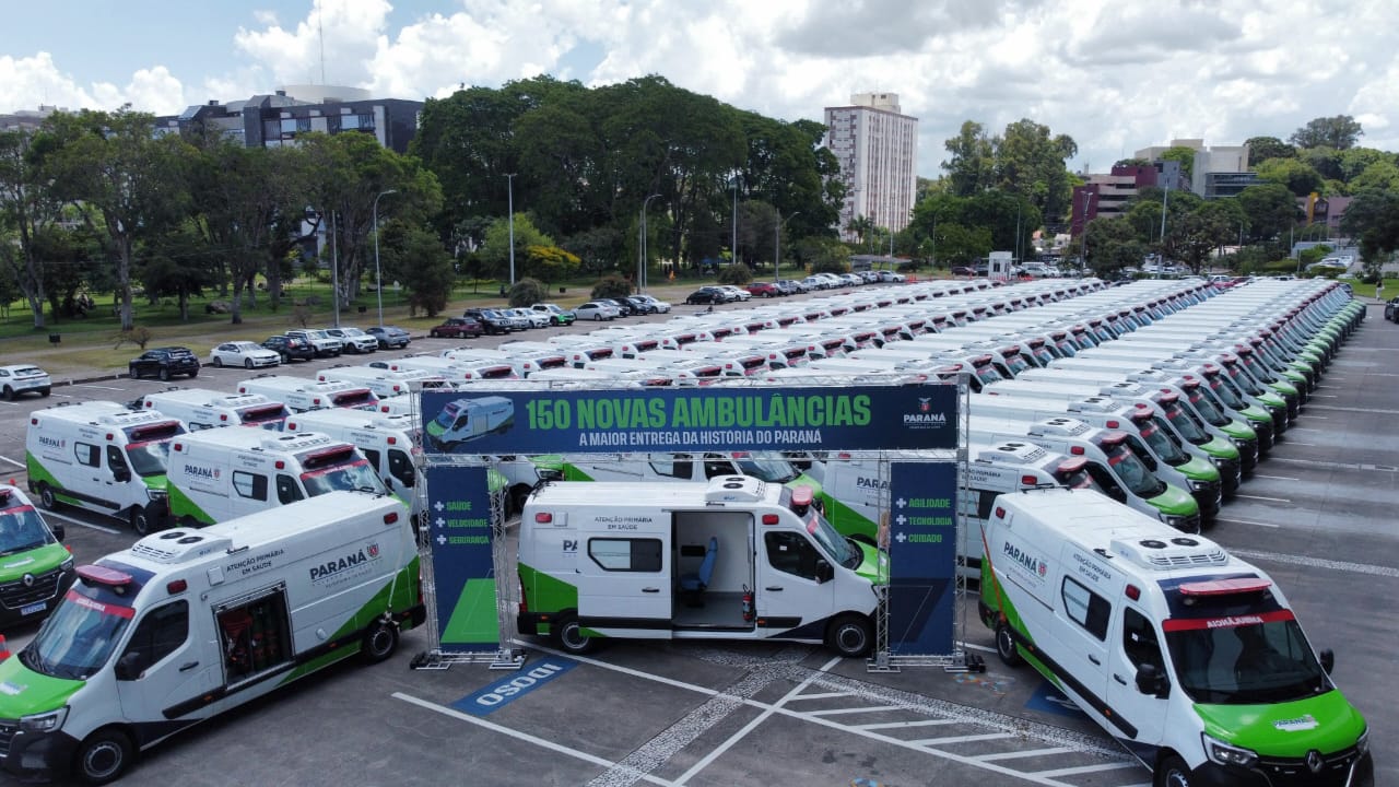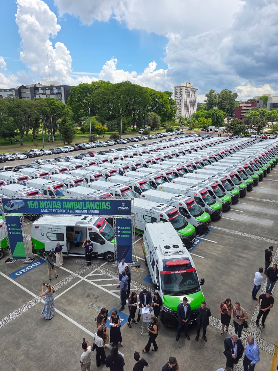 O Governo do Paraná entregou nesta quarta-feira (3) um novo reforço para a estrutura de urgência e emergência em todas as regiões do Estado: 150 ambulâncias equipadas como UTIs móveis, adquiridas com investimento de R$ 82,5 milhões da Secretaria de Estado da Saúde (Sesa). A cerimônia conduzida pelo governador Carlos Massa Ratinho Junior marcou o início da distribuição da nova frota, que vai ampliar a capacidade de resposta dos municípios e modernizar os serviços pré-hospitalares.