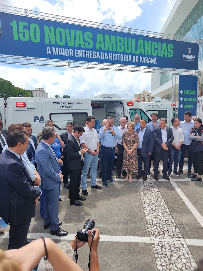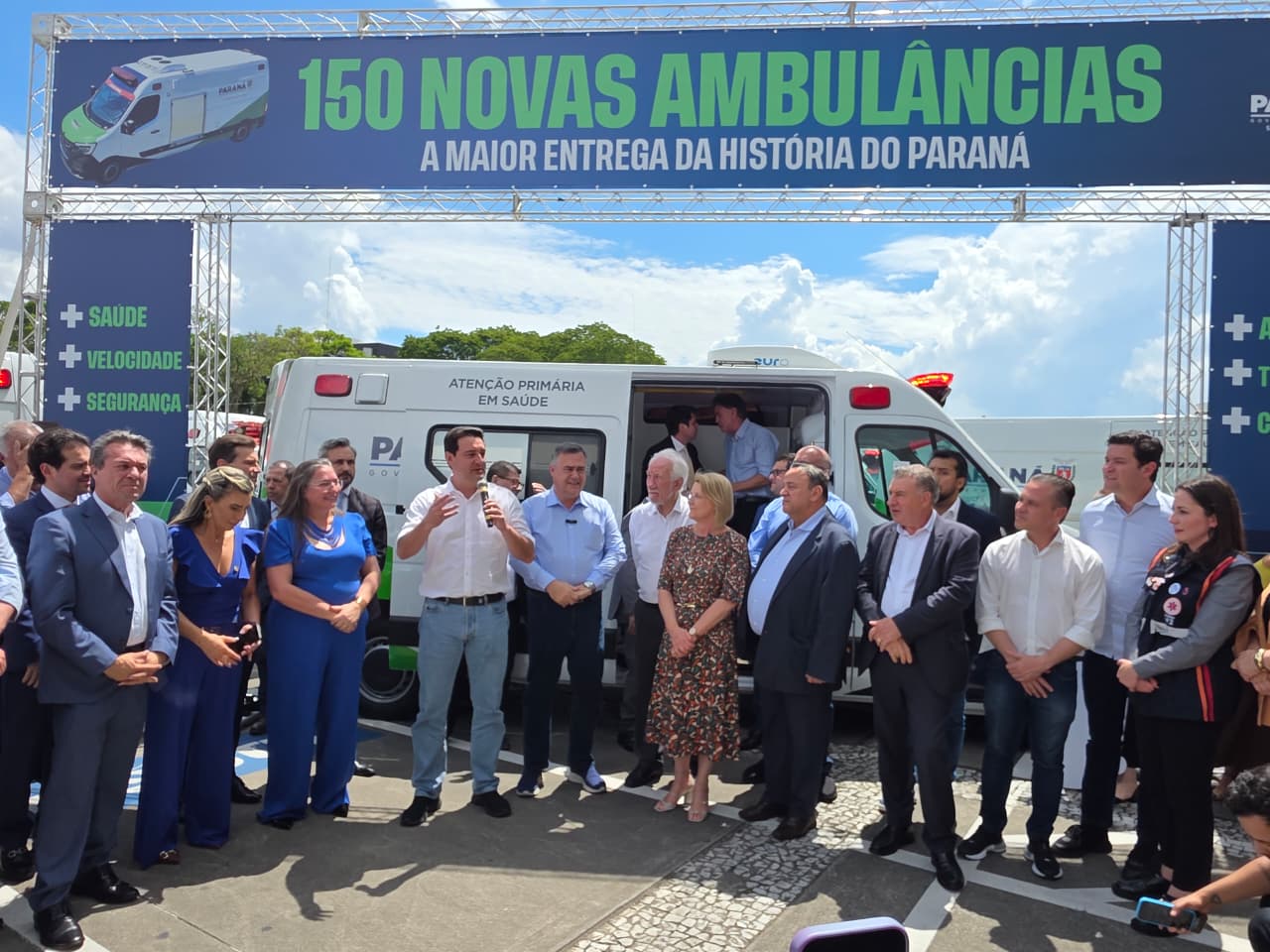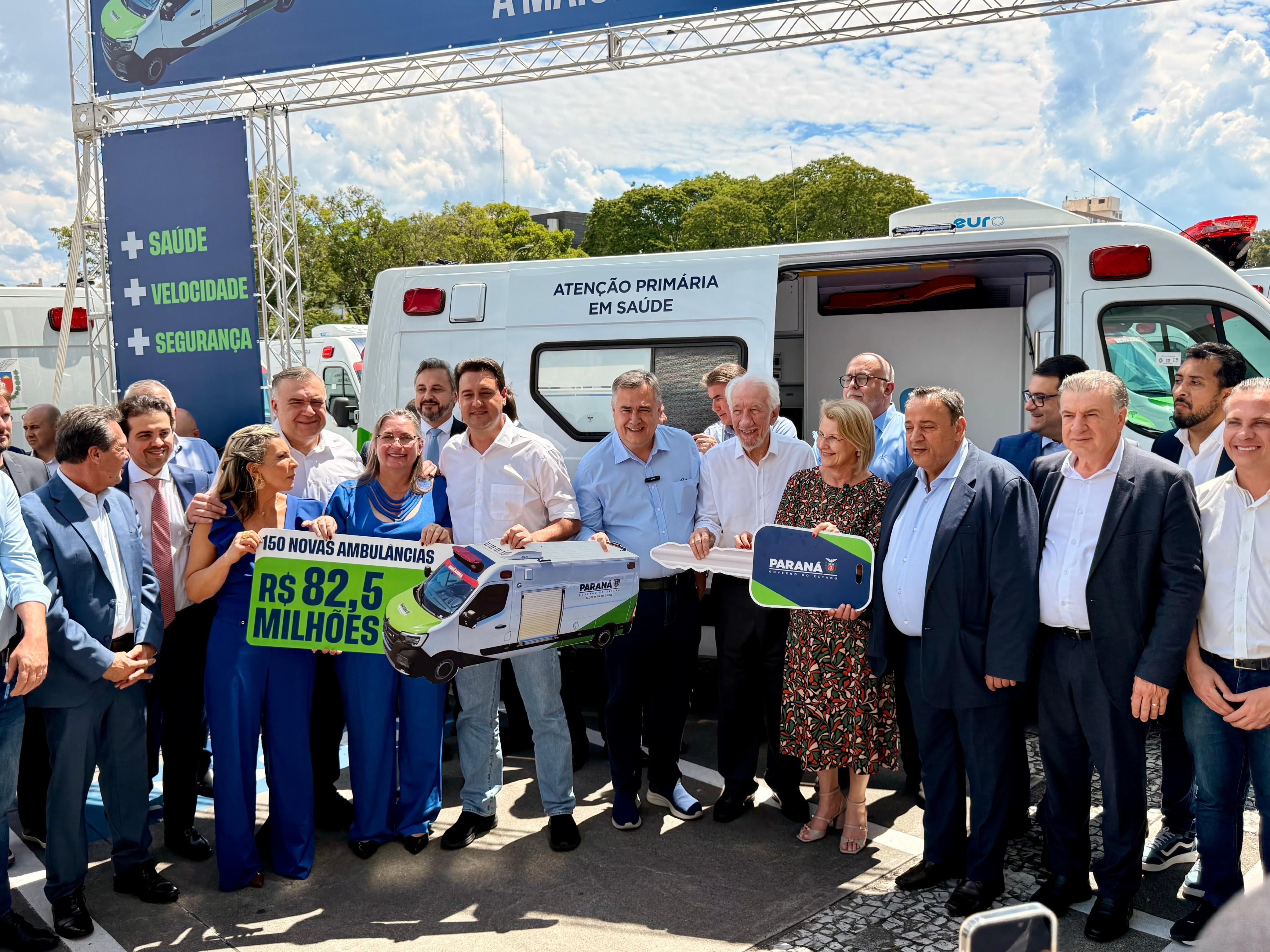 O Governo do Paraná entregou nesta quarta-feira (3) um novo reforço para a estrutura de urgência e emergência em todas as regiões do Estado: 150 ambulâncias equipadas como UTIs móveis, adquiridas com investimento de R$ 82,5 milhões da Secretaria de Estado da Saúde (Sesa). A cerimônia conduzida pelo governador Carlos Massa Ratinho Junior marcou o início da distribuição da nova frota, que vai ampliar a capacidade de resposta dos municípios e modernizar os serviços pré-hospitalares.