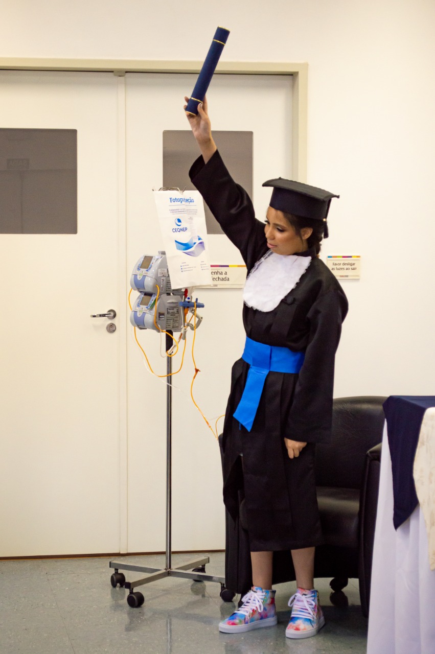 A paciente Estephany Aparecida das Chagas Morais, participou de uma solenidade de colação de grau, de conclusão do ensino fundamental, especialmente realizada para ela, com direito a formação de mesa de autoridades e convidados, como ocorre em uma cerimônia de formatura tradicional.