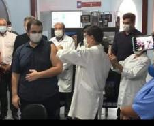A sessão de vacinação contou com a presença do diretor da Primeira Regional de Saúde do Estado, área de abrangência do HRL, José Carlos de Abreu, que conferiu de perto os primeiros passos desta nova etapa da batalha contra a pandemia.